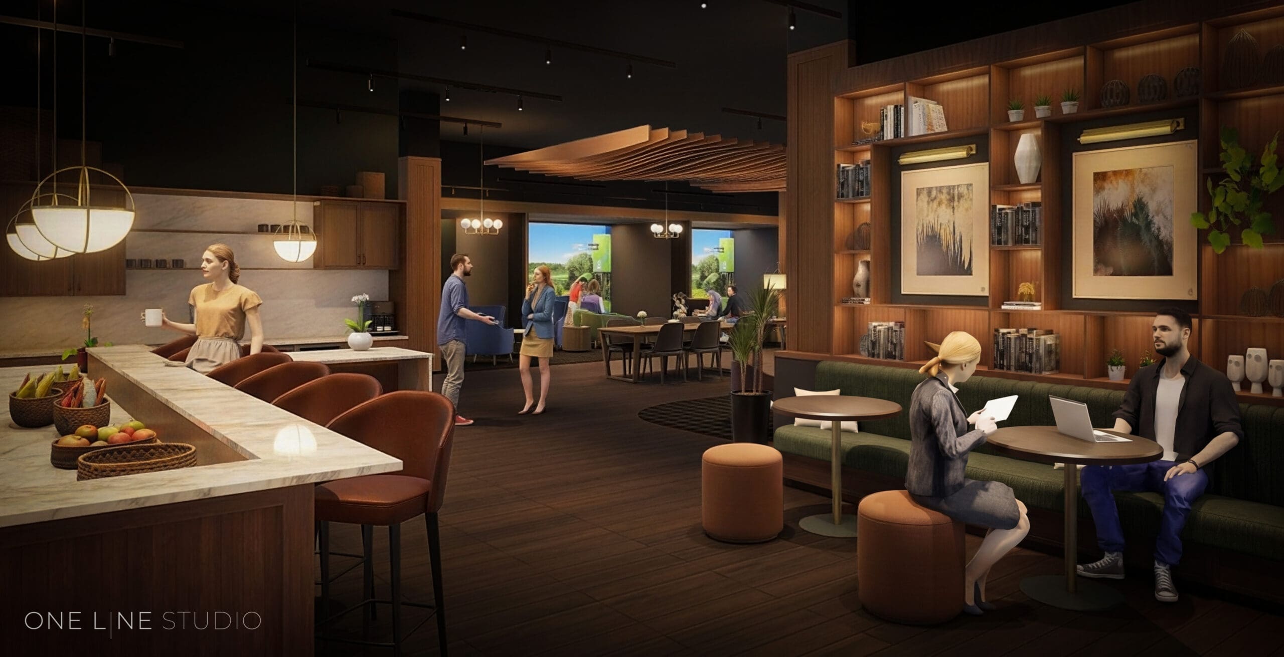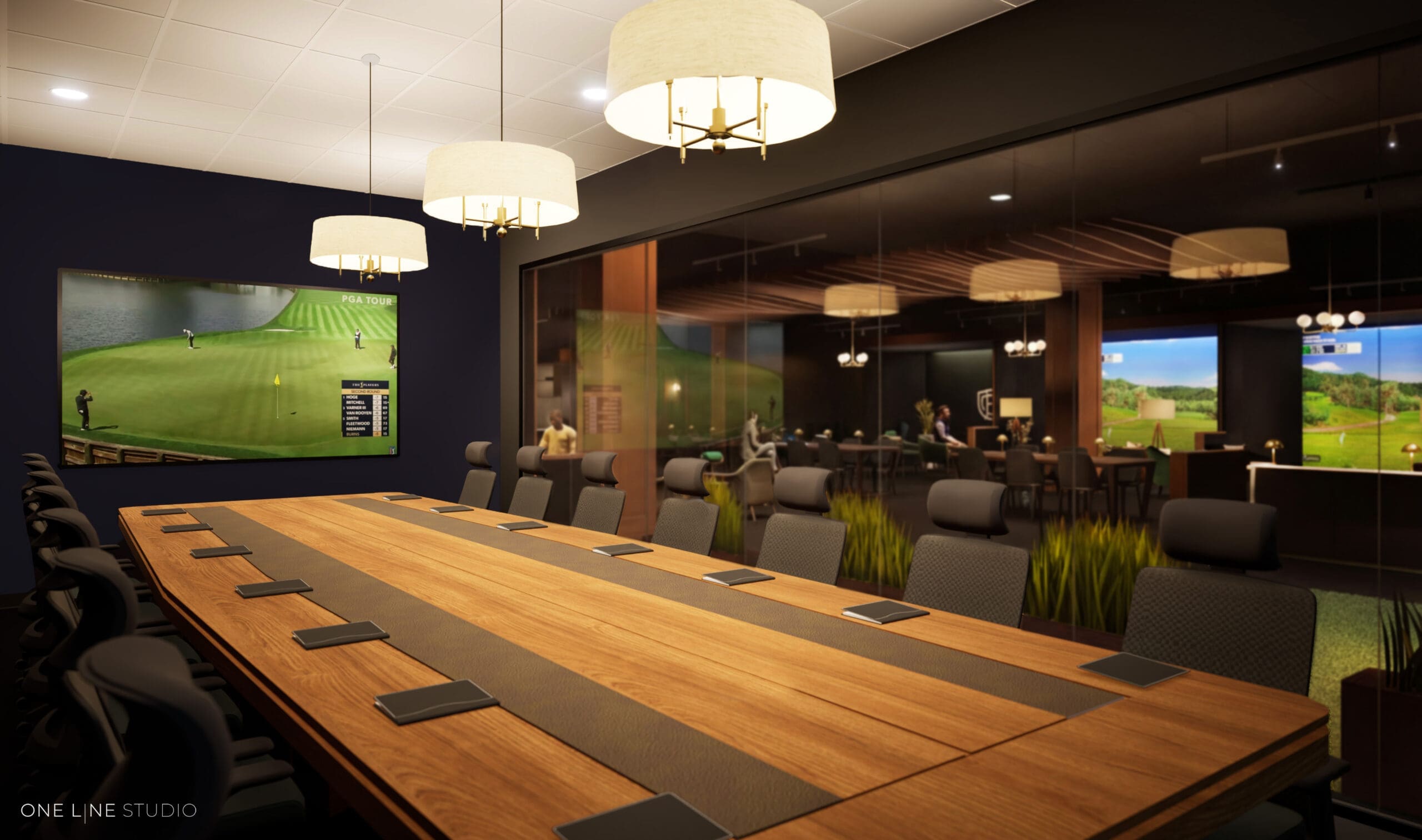 The 23,000-square-foot workspace is comprised of two-floors, featuring 65 private offices, coworking areas, meeting rooms and five Trackman golf simulators.