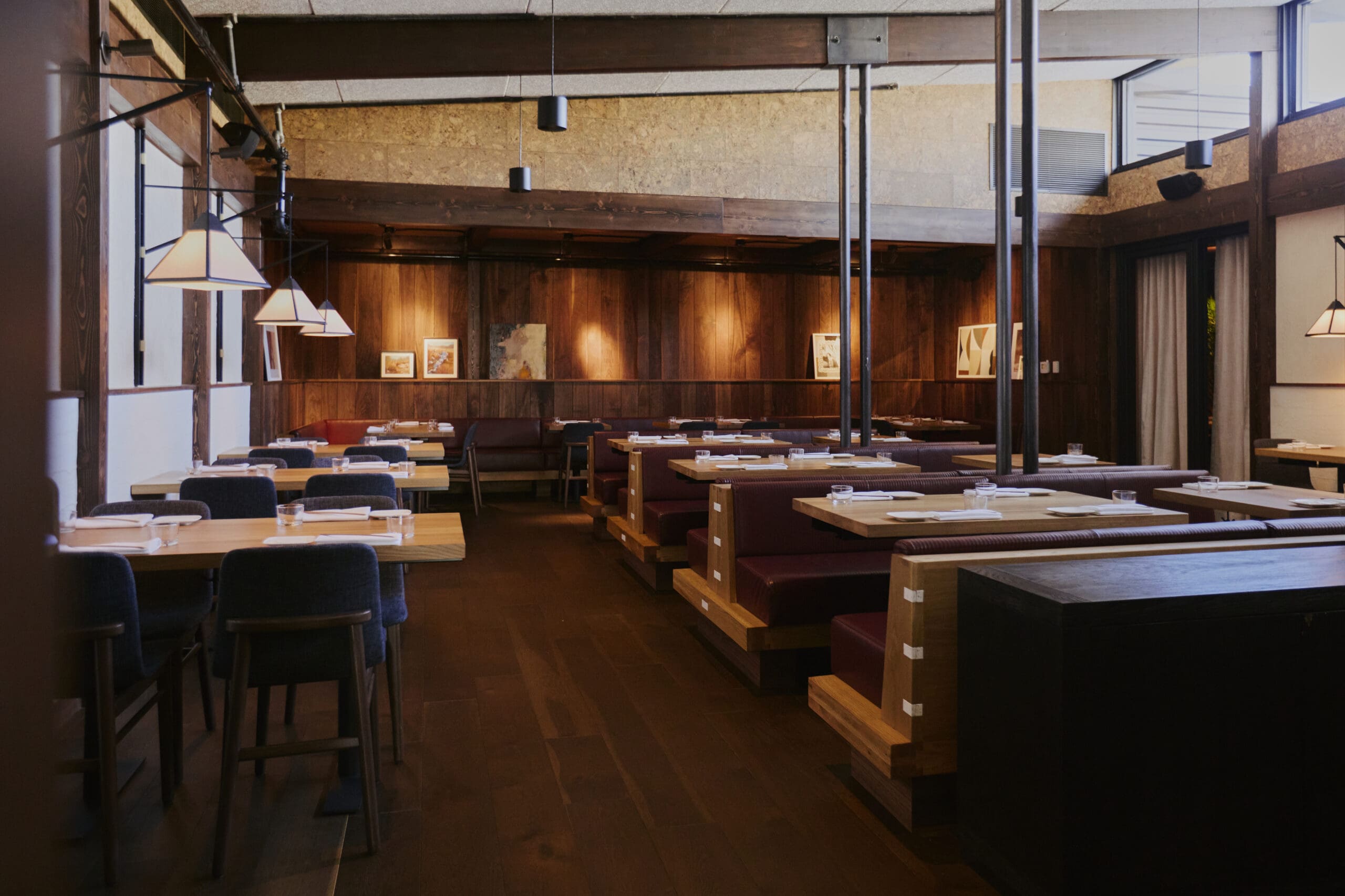 “One of the first design decisions was to place the live-fire grill at the heart of the dining space so guests could see this dynamic element from multiple vantage points,” says Saathoff. “It’s central not just visually, but as the centerpiece of the Uchiko menu—a key differentiator for this brand.”